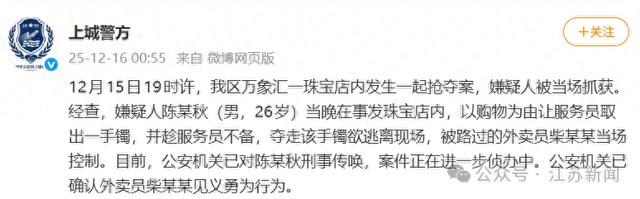 12月16日凌晨,杭州市公安局上城分局官方微博通报: