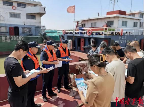 执法人员向锚泊船开展法规宣传。裕溪口海事处供图