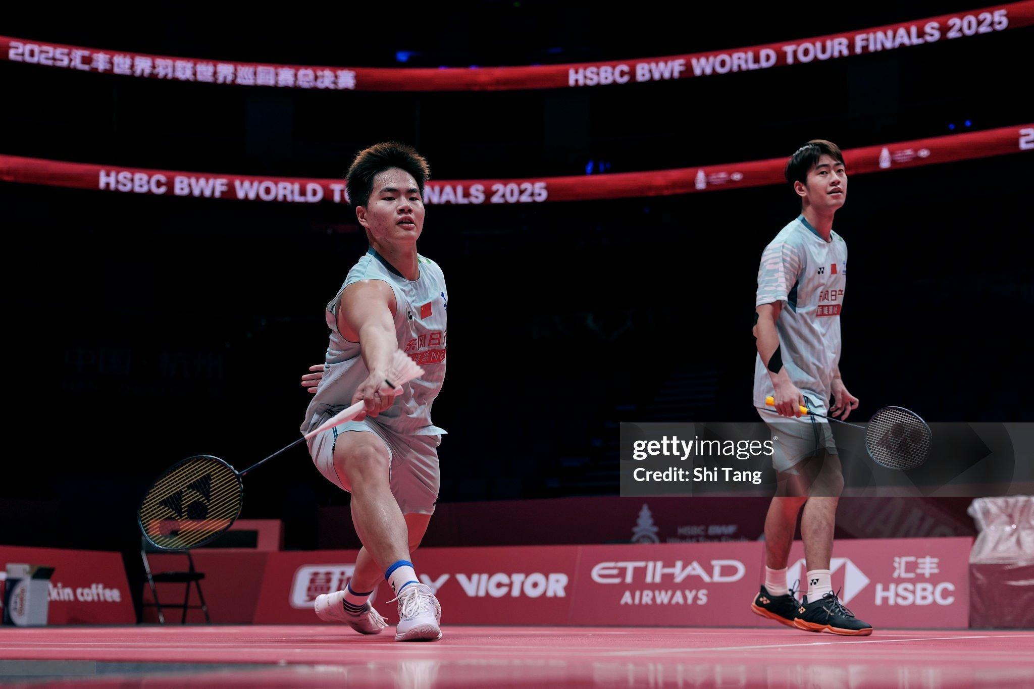 梁王驾到梁王组合 梁王加油 2025世界羽联年终总决赛20251215 场地适应©️Getty images
