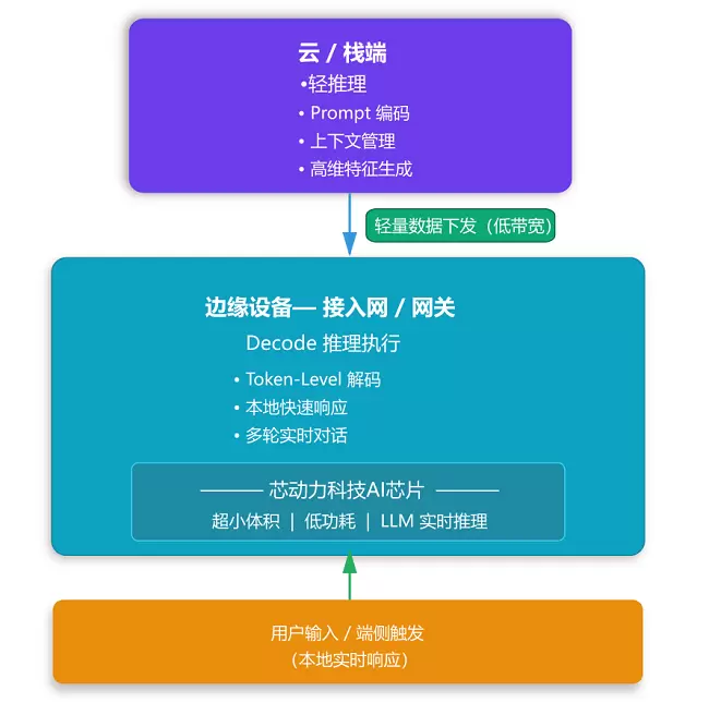 尤其值得关注的是,芯动力科技已完整具备业内领先的计算架构,并在与中兴通讯的合作中快速落地部署。该能力使大型语言模型(LLM)的推理流程在光接入侧更加轻量高效,实现计算任务的高效分配与协同处理。该架构的优势在于显著降低算力负载、减小模型推理延迟,并让算力能够真正下沉至接入网等边缘设备上,大幅提升光接入场景中的AI服务可达性与实时性。