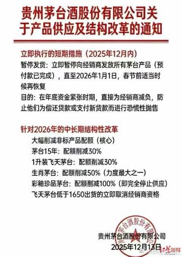 此前,市场流传一张标题为《贵州茅台酒股份有限公司关于产品供应及结构改革的通知》的文件。有茅台经销商告诉红星资本局,这份文件在他所在的很多经销商群里转发。但红星资本局注意到,该文件落款印章为“贵州茅台酒股份有限公”,少了“司”字。#茅台称将发布未来市场政策#