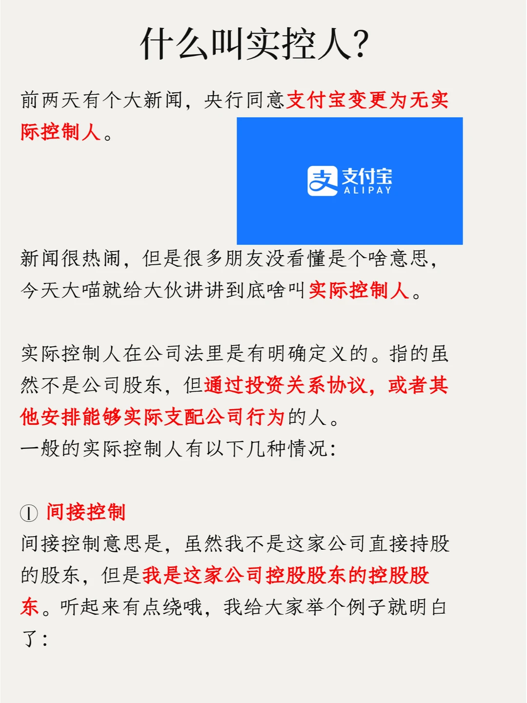 前两天有个大新闻,央行同意支付宝变更为无实际控制人,新闻很热闹,但是很多朋友没看懂是个啥意思,今天大喵就给大伙讲讲到底啥叫实际控制人。