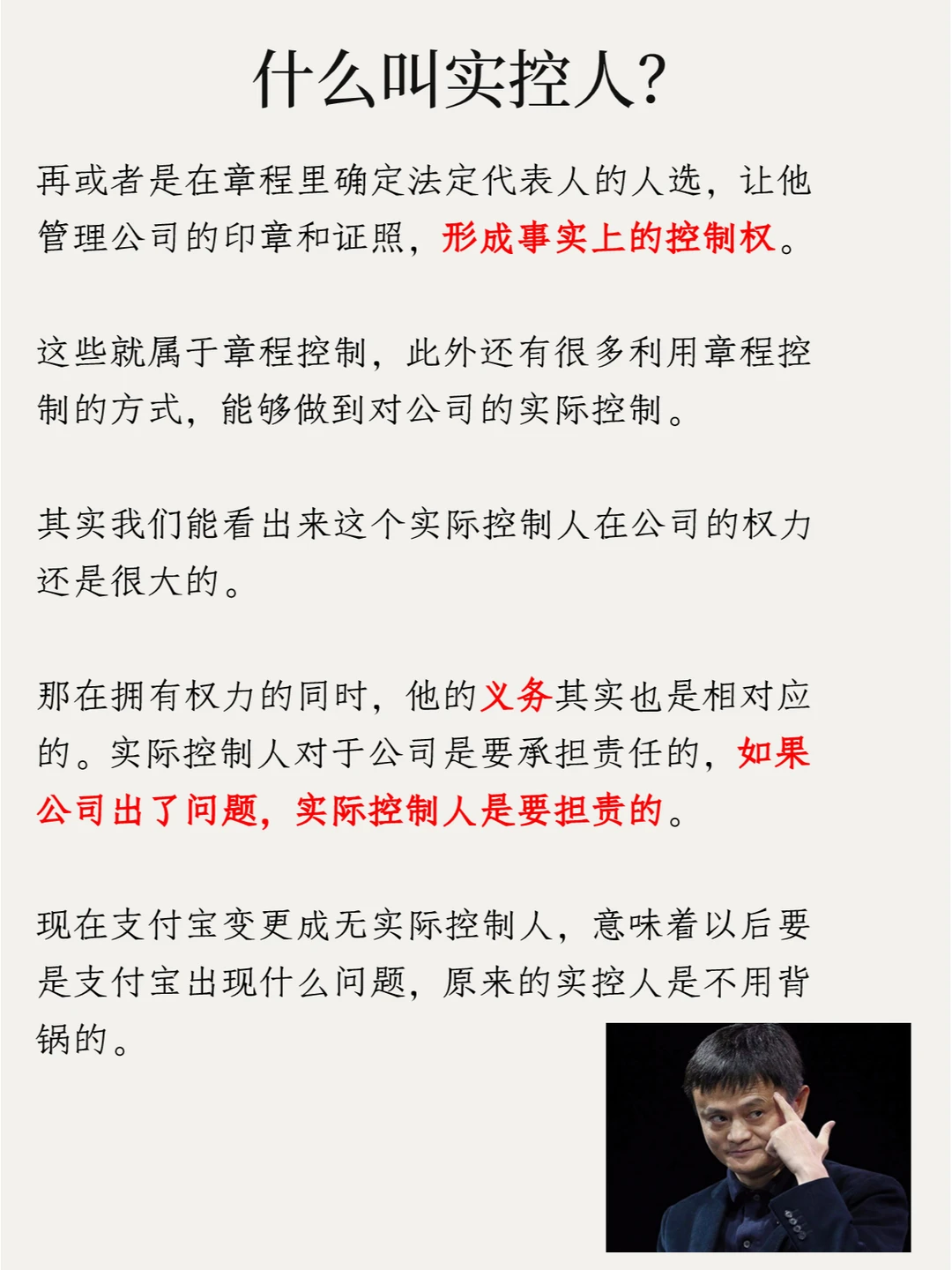 现在支付宝变更成无实际控制人,意味着以后要是支付宝出现什么问题,原来的实控人是不用背锅的。
