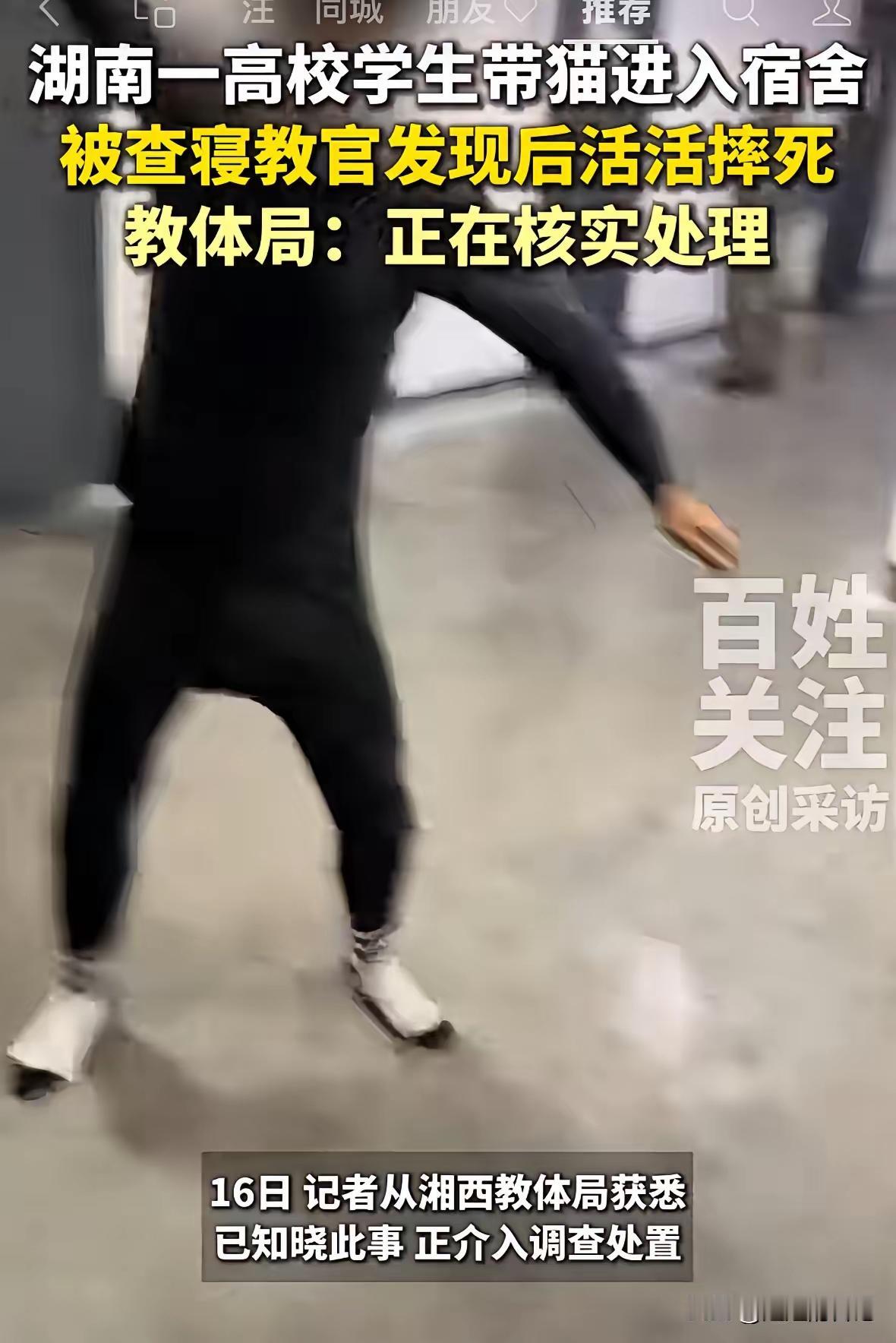 昨晚刷到那个视频,手都气得发抖:一只小奶猫被教官高高举起,狠狠摔在地上,连挣扎都没来得及。很多人问:“为什么反应这么大?要是别的动物或物品也会这样吗?”可问题恰恰就在这儿,生命不是物品,而教官本该是为人师表的人。 再怎么说,也不该对一只无害的小猫下死手!真遇到学生带猫进校,完全可以耐心教育,让他通知家长接走,甚至联系校方妥善安置。再大的事,也能好好沟通,何必用暴力终结一条命? 更让人后怕的是,这种人在众目睽睽下都敢如此失控,若没有视频曝光,谁知道他私下还会做出什么更可怕的事?一个心理容易扭曲、对弱小毫无怜悯的人,根本不适合站在教育岗位上。依规处理是底线,但守护人性,才是教育的起点。