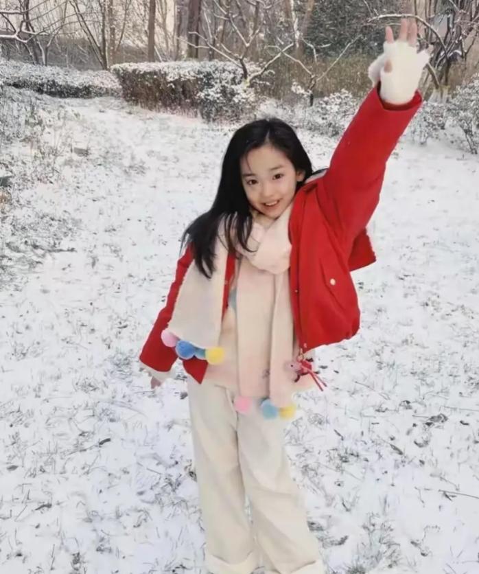 董璇分享了女儿小酒窝的初雪美照,照片里小酒窝穿着红色羽绒服,在雪地里尽情撒欢,活力满满。 小酒窝完美遗传了父母的好颜值,一双大眼睛配上纤长睫毛,皮肤白皙透亮,她身上流露的自信和灵动更让人印象深刻,讨人喜欢。图片来自网络,侵删。