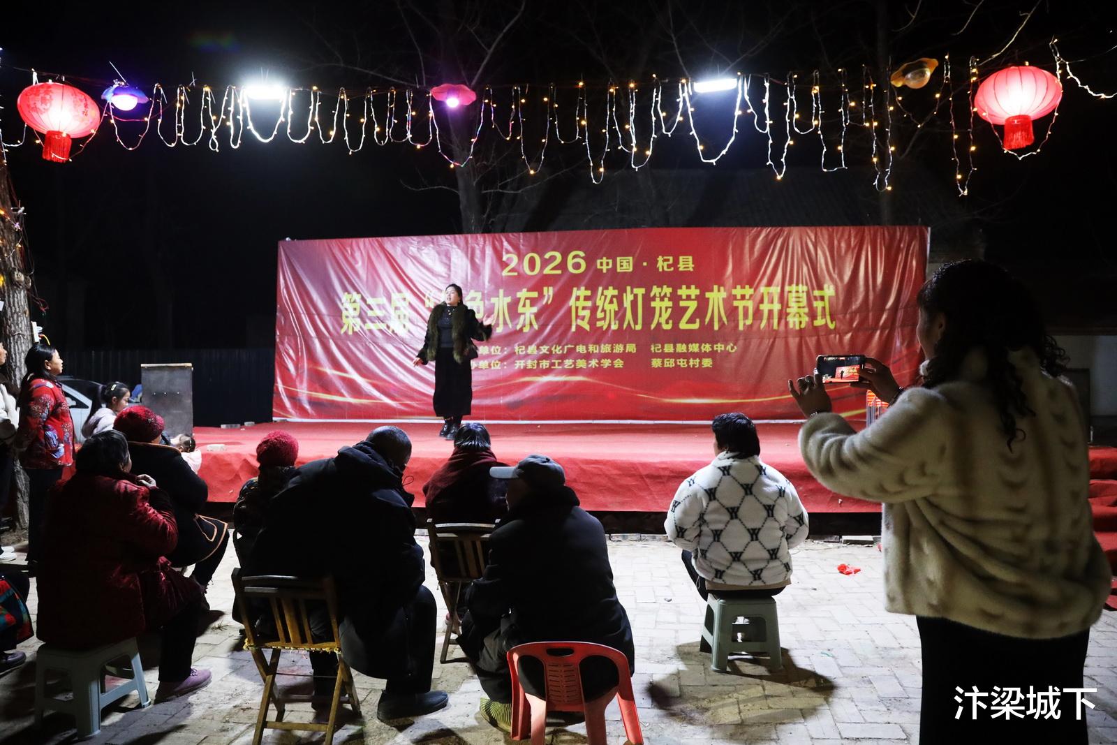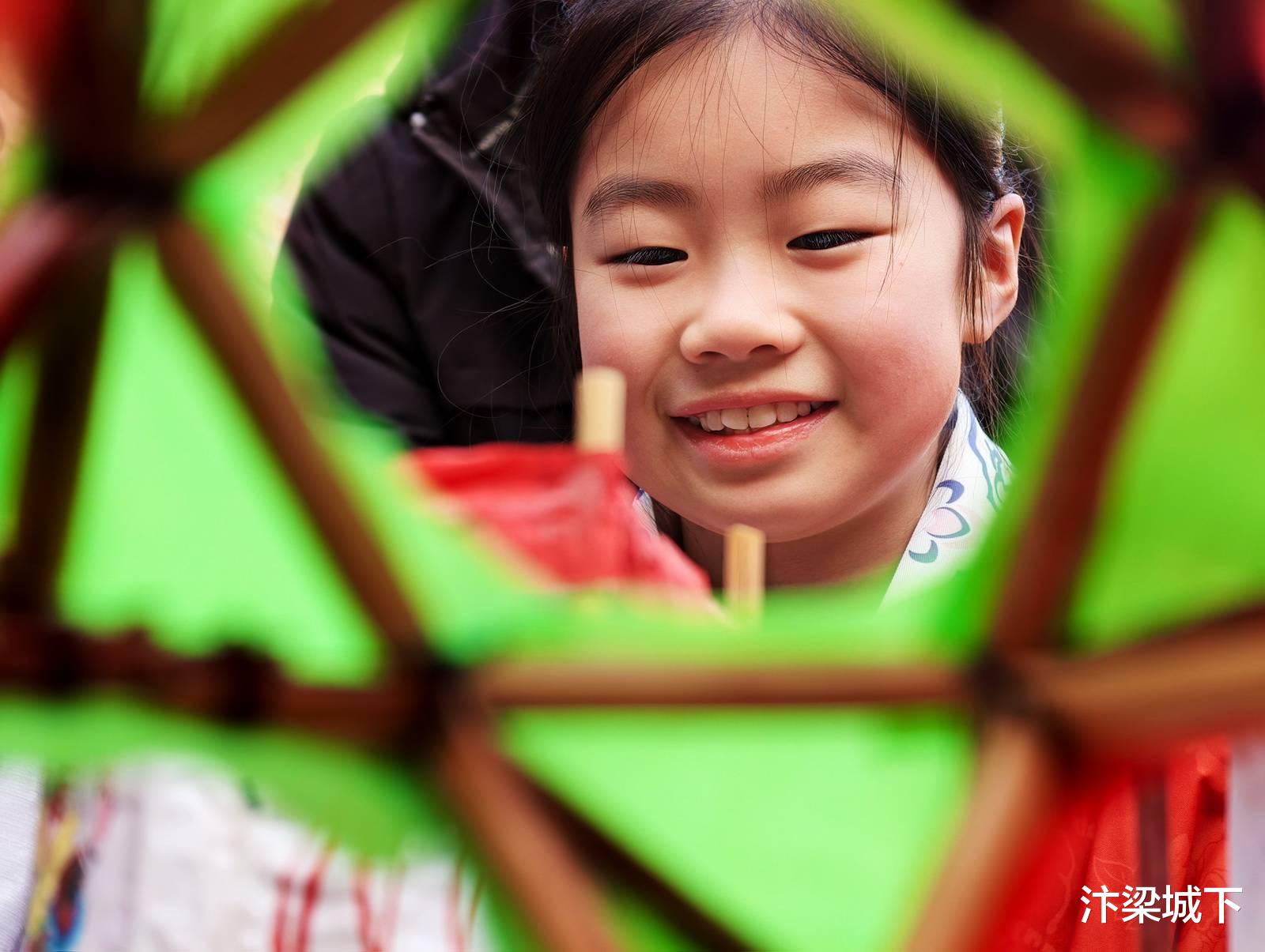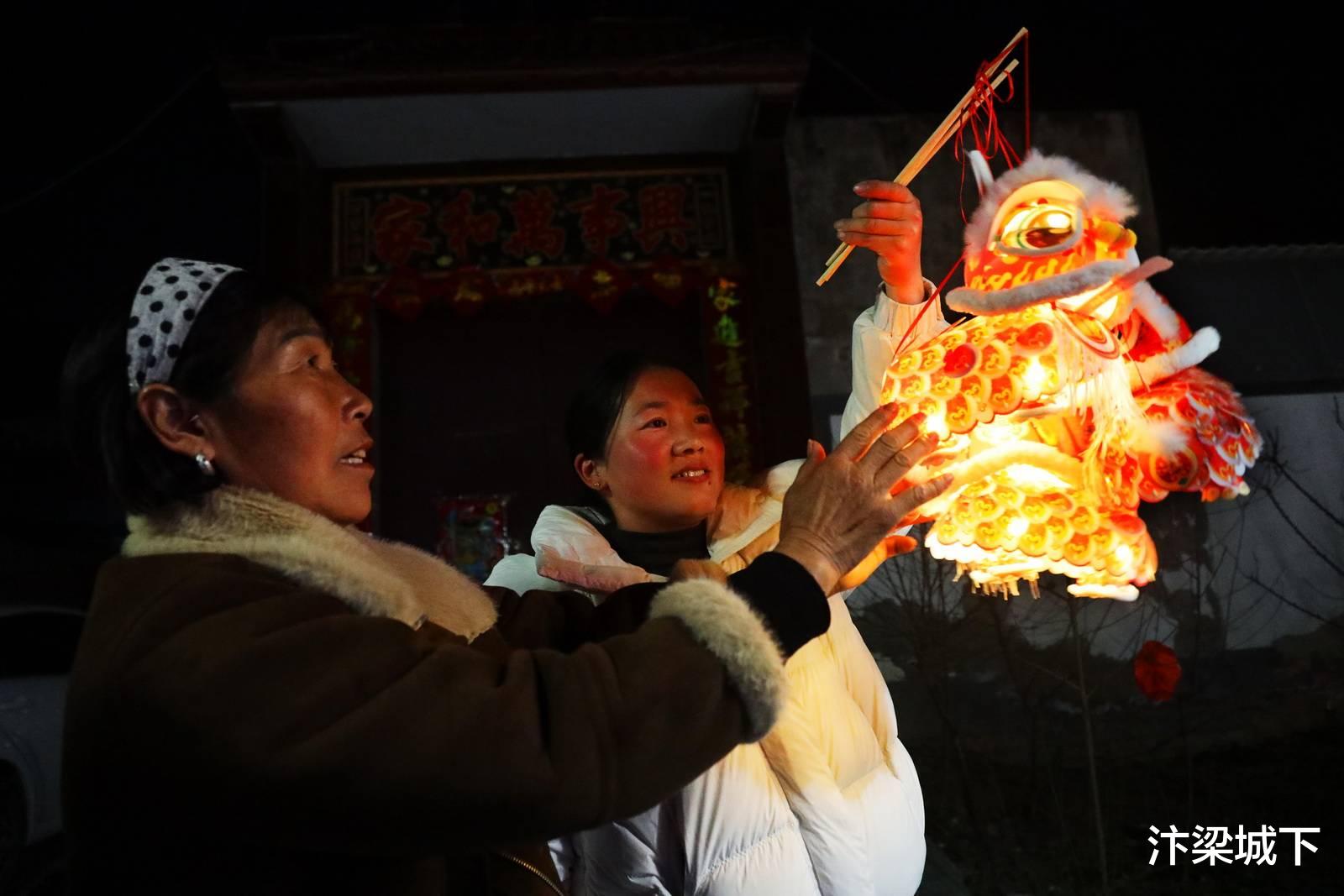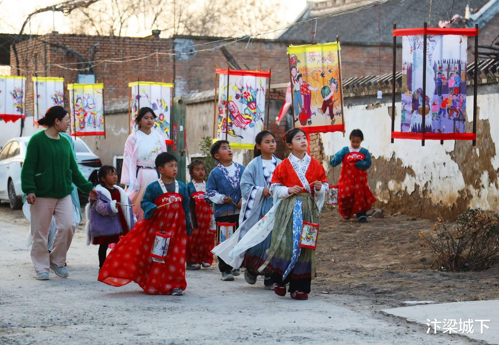 活动期间,恰逢蔡邱屯“红色水东”第三届传统灯笼艺术节火热举办。红灯笼挂满街巷,大街小巷古韵悠悠,走马灯、蒺藜灯流光溢彩,身着古装服饰的村民穿行其间,勾勒出一幅穿越千年的民俗画卷。街头巷尾,孩子们拿着琉璃嘣嘣轻轻吹奏,薄玻璃发出清脆悦耳的“啪啪”声响,唤醒了几代人的童年记忆,满是淳朴的乡愁年味。往来观灯的群众脸上洋溢着笑容,一位村民感慨道:“看着满街的灯笼,听着熟悉的琉璃嘣嘣声,小时候的年味又回来了,古村有历史、有传承,日子过得越来越舒心,心里特别暖。”