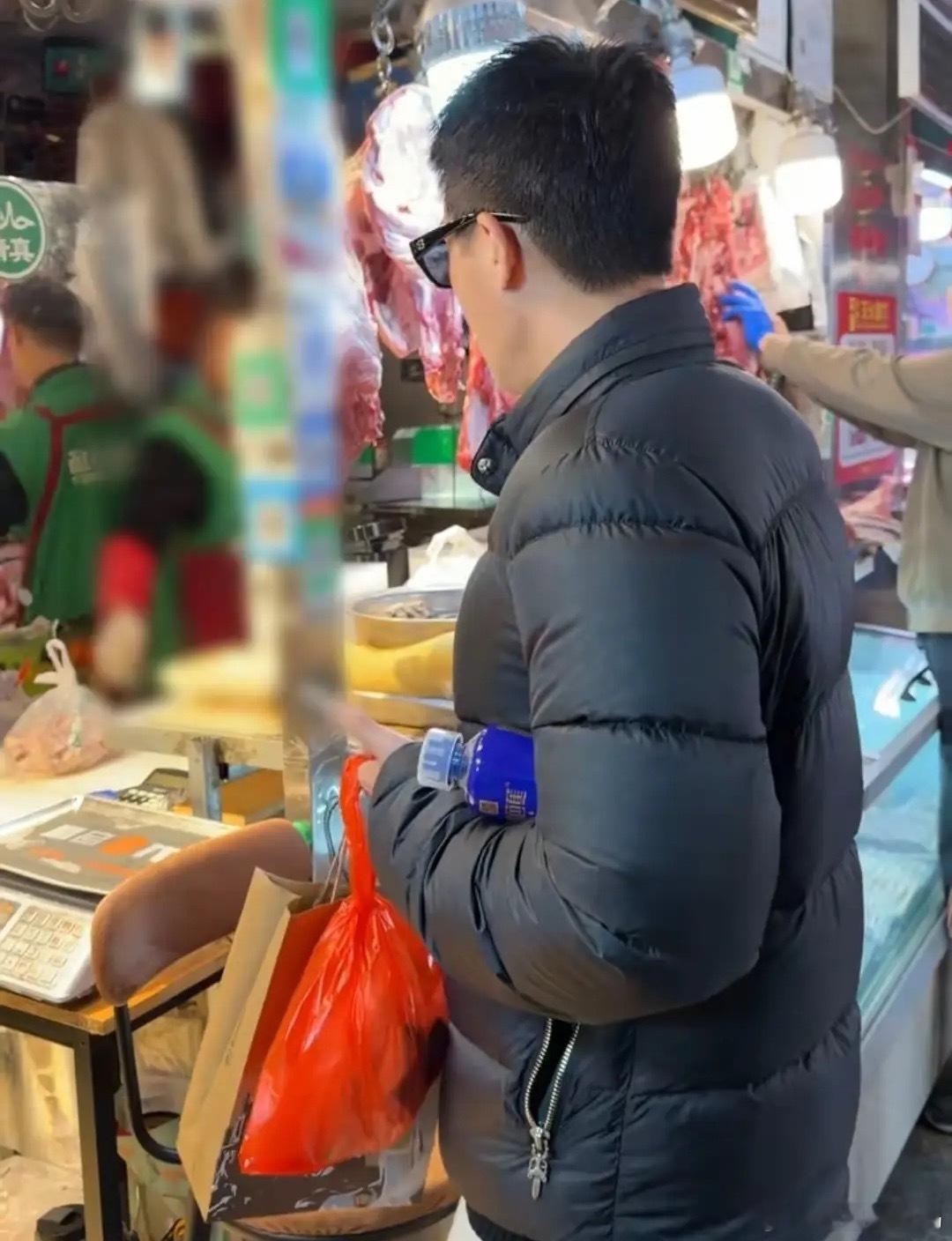 王灿一家去菜市场,杜淳戴大墨镜,买西葫芦还讲价,樱桃不洗就吃!