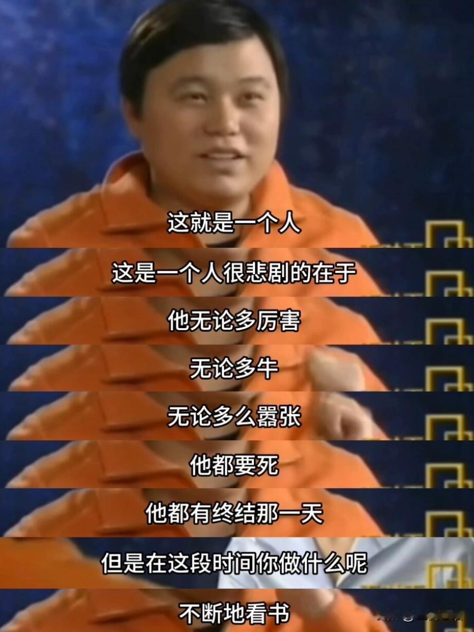 这才是人间清醒的活法 《明朝那些事儿》的作者~ 石悦的这段采访, 真的越品越有味道, 翻来覆去看了不下10遍! 他20岁考上万里挑一的海关岗位, 2000年就拿六千工资,生活毫无压力。 可他却坦言“现在不怎么高兴”, 后来才明白,是自己不懂生活的烟火气。 26岁前连洗衣服都要问别人, 待人接物全靠慢慢学,这样的反差太真实。 但他的感悟,却戳中了无数人: 温饱是底线,钱、名望、权力是进阶, 可真正能滋养一生的, 是超越这一切的智慧。 人终究会走向终点, 这段旅程的意义,藏在不断求知里。 他说看书时从不孤单, 翻开历史书就像看大海, 那些古人的挣扎、奋斗, 一页纸就能翻过无数人的一生。 这种通过读书懂世界规律的喜悦, 是物质换不来的。 现在太多人被焦虑裹挟, 忙着追名逐利,却忘了向内生长。 其实内在的强大, 才是对抗一切不确定性的底气。 多读书,多沉淀, 当你懂得足够多,对世界足够了解, 自然就不会畏惧未知,活得清醒又从容。 这大概就是读书的终极意义, 也是最踏实的人生智慧~ (ps:穿的是冬装,不是囚服)