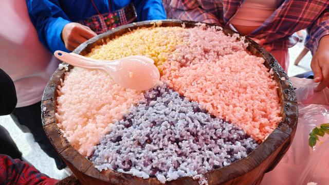 活动当天,在民俗体验区,村民们早早准备好象征幸福安康的五彩糍米饭,热情地分发给到场的每一个人。五彩斑斓的糍米饭,不仅承载着美好的寓意,更拉近了人们之间的距离,让大家在品尝美食的同时,提前融入节日的欢乐氛围中。