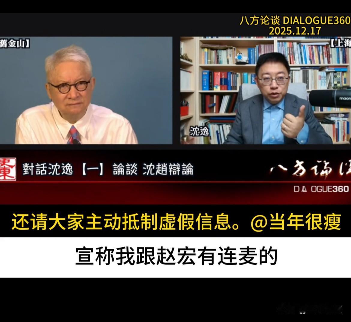 沈逸教授出来辟谣了,从没有以任何形式与赵宏教授连线或者视频辩论过,纯粹就是在两个不同的场景对相同的事件发表过观点而已。 前几天网络上闹的沸沸扬扬的将两人p在一张图上,并发表所谓的“辩论”或者观点对质的,都是谣言。 其实类似的文案铺天盖地出来的第一时间我就认为有漏洞,赶紧去查证,结果搜遍互联网也没发现实证。因此心里一直在质疑传达这类信息有何居心,这属于故意制造对立了。 也给我们提了一个醒,自媒体的吃瓜群众们,对信息的甄别与谨慎传播是何等重要。