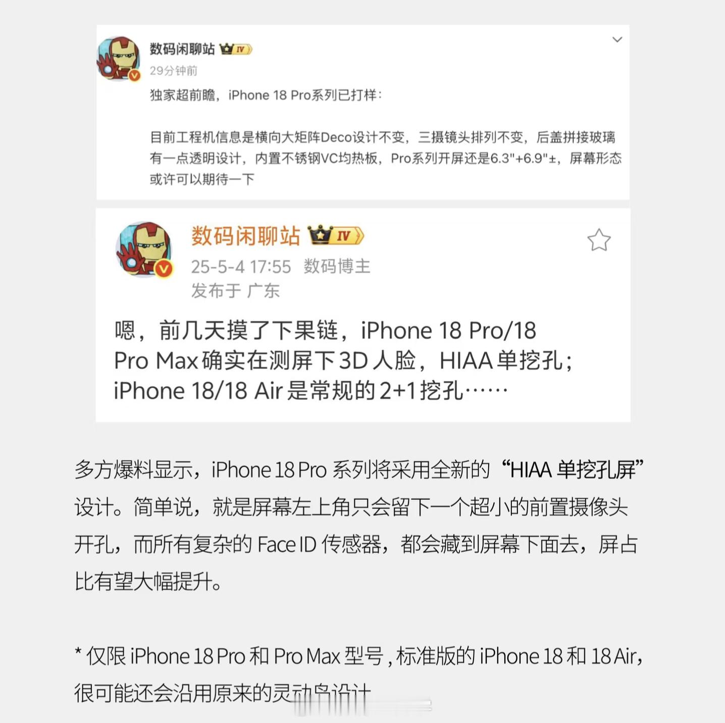 iPhone18Pro或摒弃药丸状挖孔这条消息八成是假的,如果改成左上角的挖孔,
