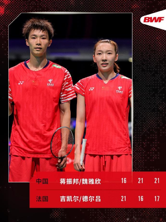 直播吧12月17日讯世界羽联年终总决赛,混双A组小组赛,蒋振邦/魏雅欣16-21、21-16、21-17战胜吉凯尔/德尔吕法国组合。
