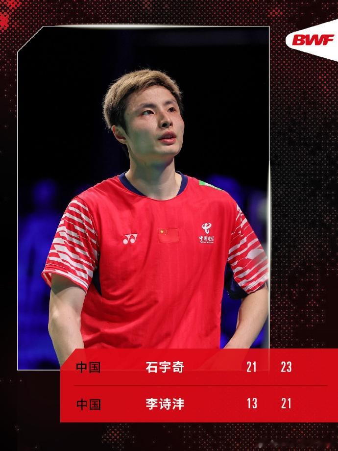 世界羽联年终总决赛男单B组,石宇奇21-13、23-21李诗沣,取得小组赛首胜。