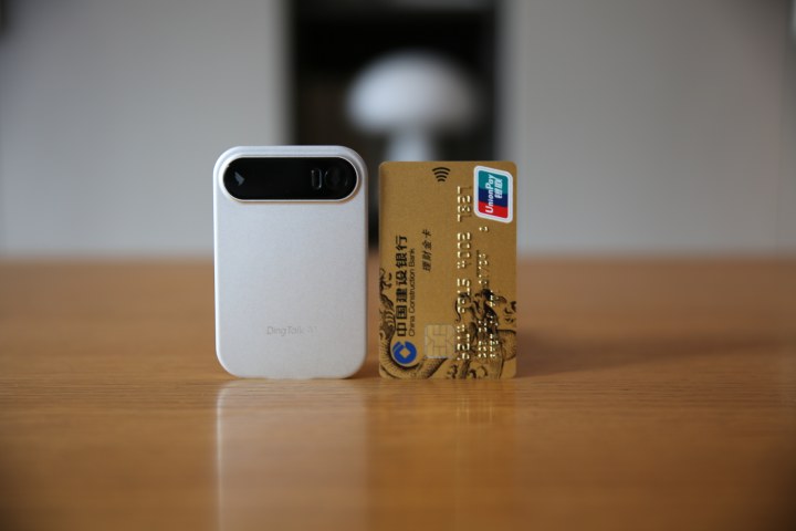 厚度只有3.88mm的DingTalkA1,官方介绍“一张”重量为40.8克(对,薄到量词可以用“张”)。用克重秤实测的结果是41.2克(含一定误差)。