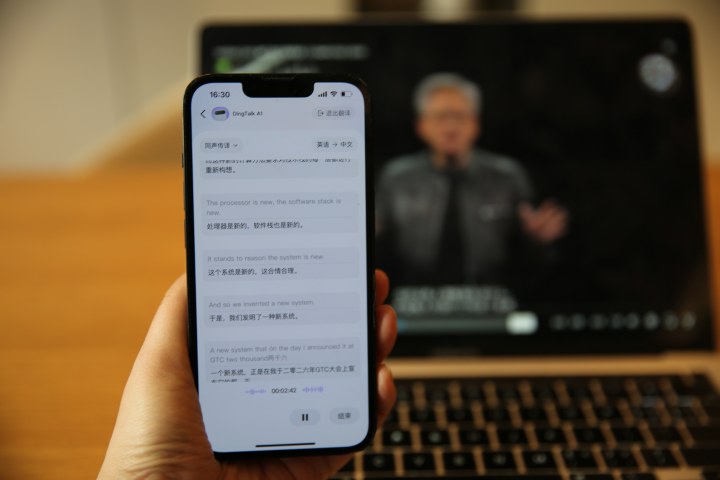 在电脑端播放了一段老黄黄仁勋在Computex2025的英文演讲。在大模型的加持下,可以做到同声传译,边录边翻,一句英文对应一句中文,一目了然,非常好用。
