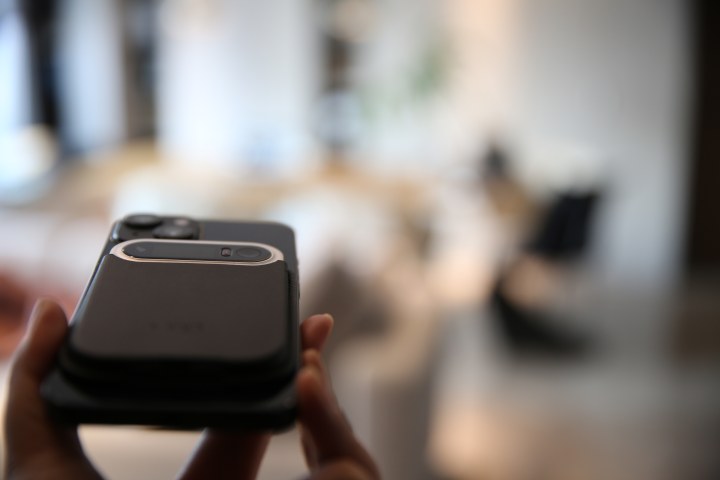 根据官方介绍,DingTalkA1可以实现5-8米远距离高清拾音。为了测试远距离拾音效果,我们在电脑上播放了一段中国工程院院士、阿里云创始人及之江实验室主任王坚在去年外滩大会上时长为24秒的现场演讲,将DingTalkA1放在距离5米左右的地方。
