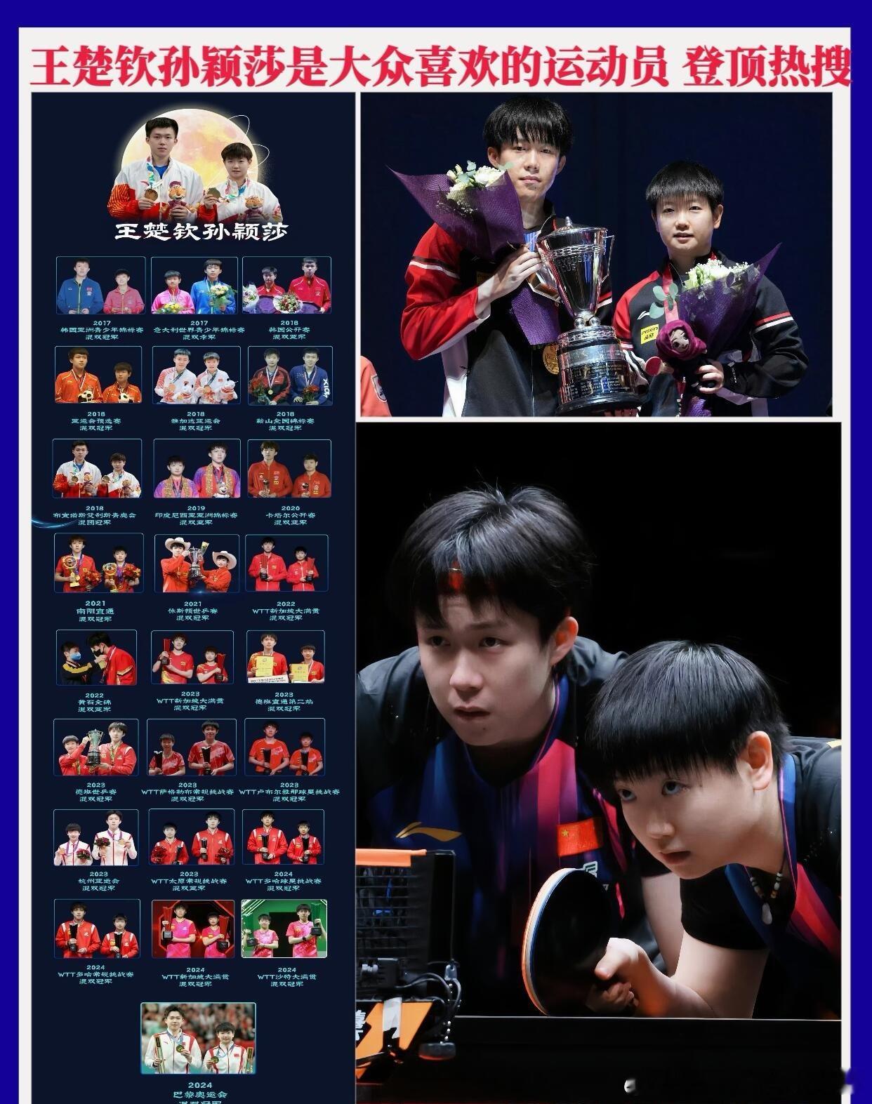 王楚钦孙颖莎是大众喜欢的运动员登顶热搜2025年体坛榜样评选中,王楚钦与孙颖莎以