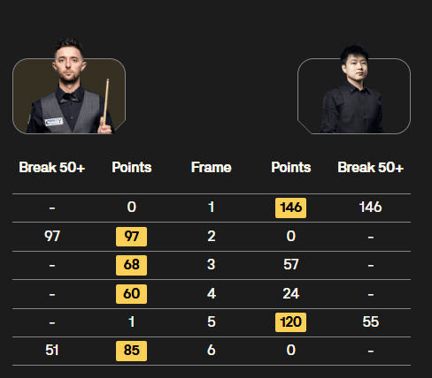 赵心童打出单杆146取得开场领先,奥康纳打出单杆97分并连胜三局率先到达赛点,赵心童打出单杆55分扳回一城,奥康纳在第六局打出51分拿下胜利,最终4-2战胜赵心童晋级16强。他将在下一轮对阵扎克-舒尔第。