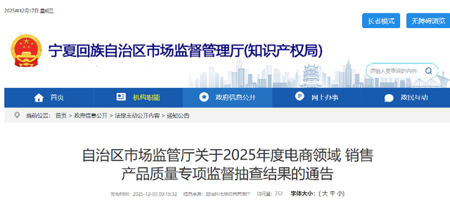 乐居财经李兰前不久,宁夏回族自治区市场监管厅发布关于2025年度电商领域销售产品质量专项监督抽查结果的通告。其中家用电器及电器附件抽检25批次,不合格5批次,不合格发现率20%。