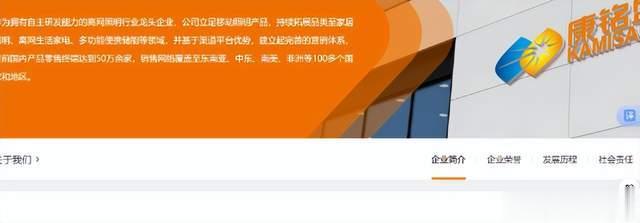 该公司官网介绍,康铭盛致力于为离网生活提供创意、智能、健康的解决方案。旗下拥有康铭、KAMISAFE、沃尔风vavofo、多朗达四大品牌。目前国内产品零售终端达到50万余家,销售网络覆盖至东南亚、中东、南美、非洲等100多个国家和地区。