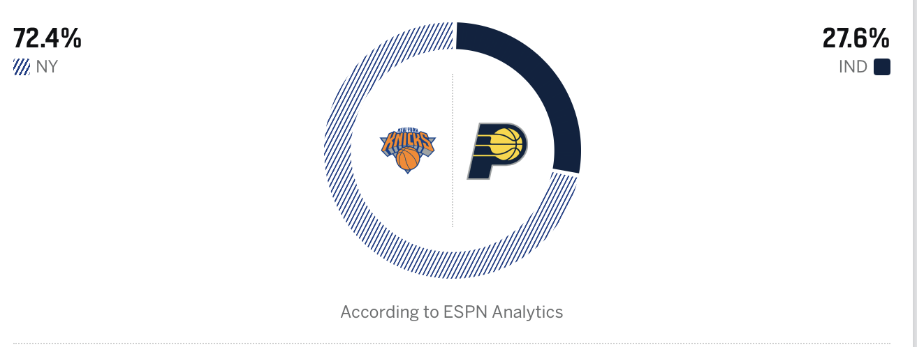 ESPN预测尼克斯vs步行者:尼克斯胜率72.4%占据优势