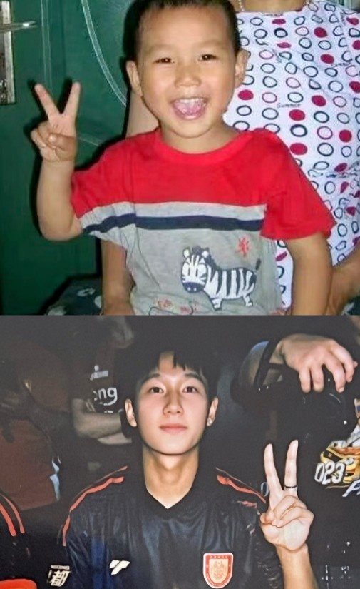 向余望分享了儿时与现在的拼接合照,并配文:“22岁”,