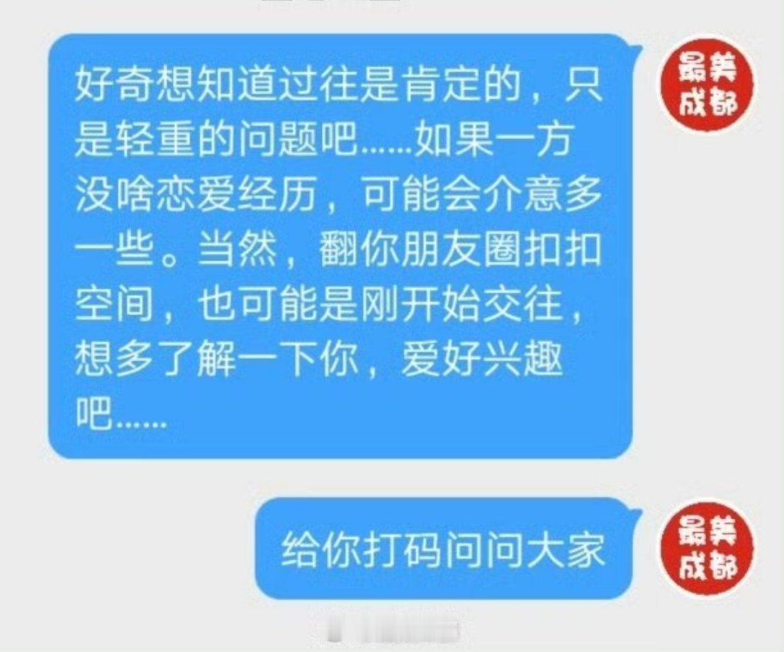【你很在意对方的过去吗】小美,是不是每一个相亲对象,都特别在意别人的过往啊?恨不得让你把前二十几年的历史通通都交待出去!这个相亲呢,还是调查户口啊?微信翻了朋友圈不够,还要去翻QQ空间?大家都是这么得好奇的吗? 忙活了一年爱情事业双休你会查户口式盘问对方吗?你会在意对方的过去么?年轻人存不下钱的原因 成都