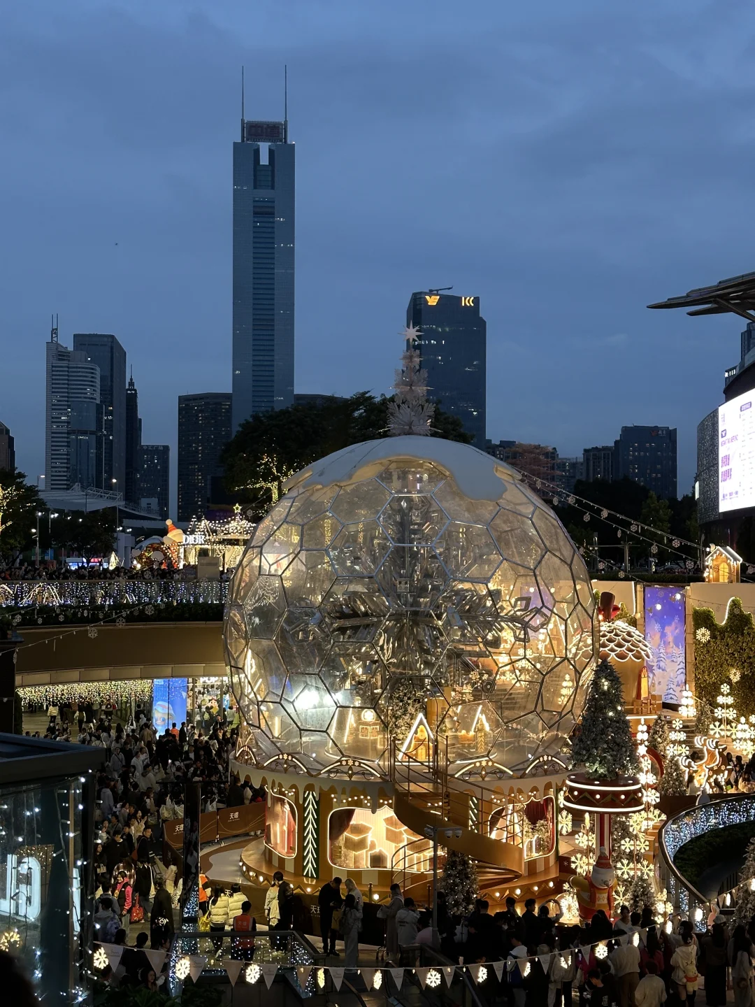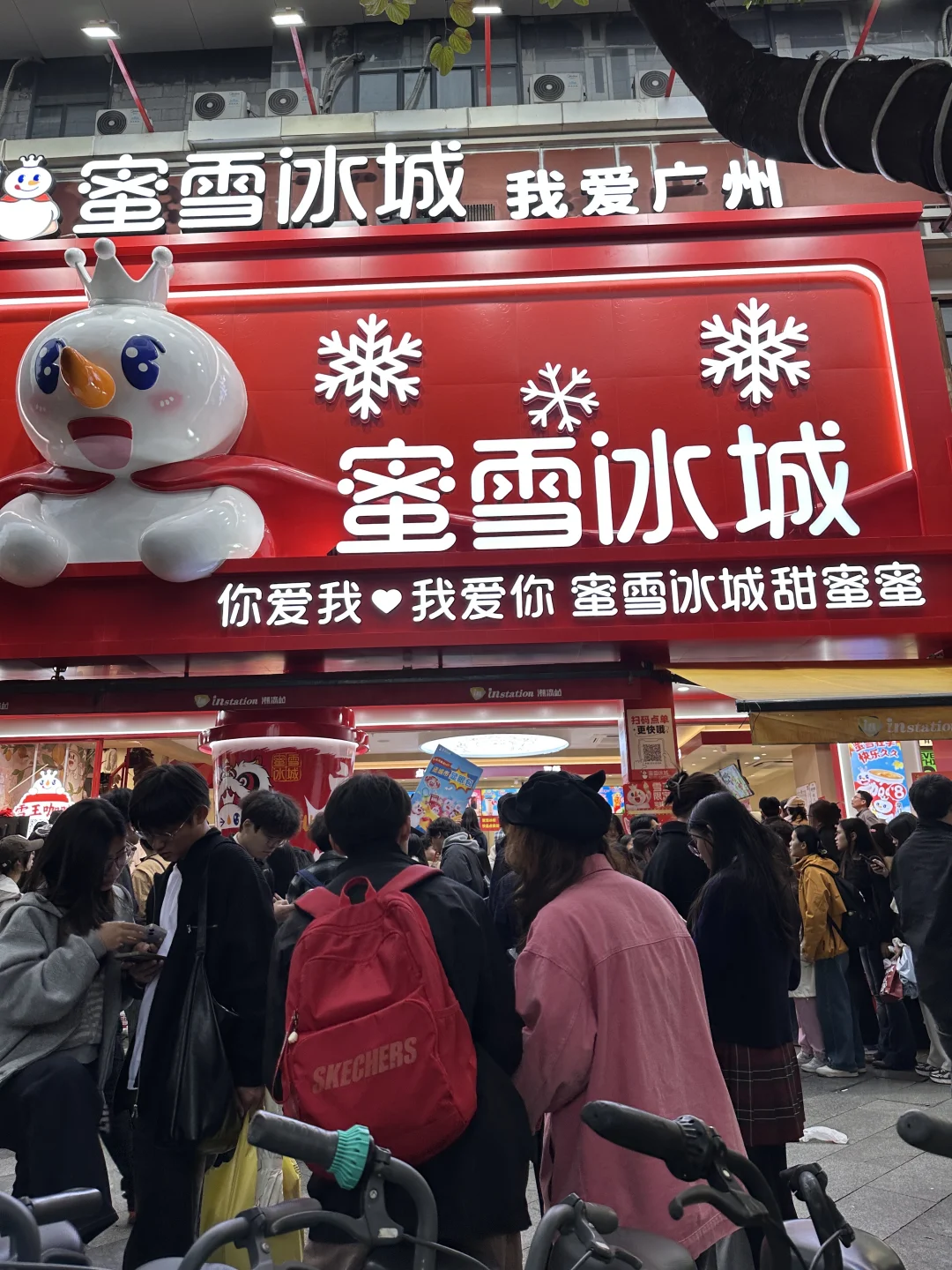 从酒馆出来雨小了点,直奔正佳广场——最近超火的网红蜜雪冰城果然排满了人,队伍绕了半圈,果断放弃打卡,拍了张门头就溜了[笑哭] 接着去天环广场,发光雪球真的好好看!暖黄的灯光裹着雪花造型,拍照超出片,就是人太多了,挤了半天才拍到一张没路人的照片。