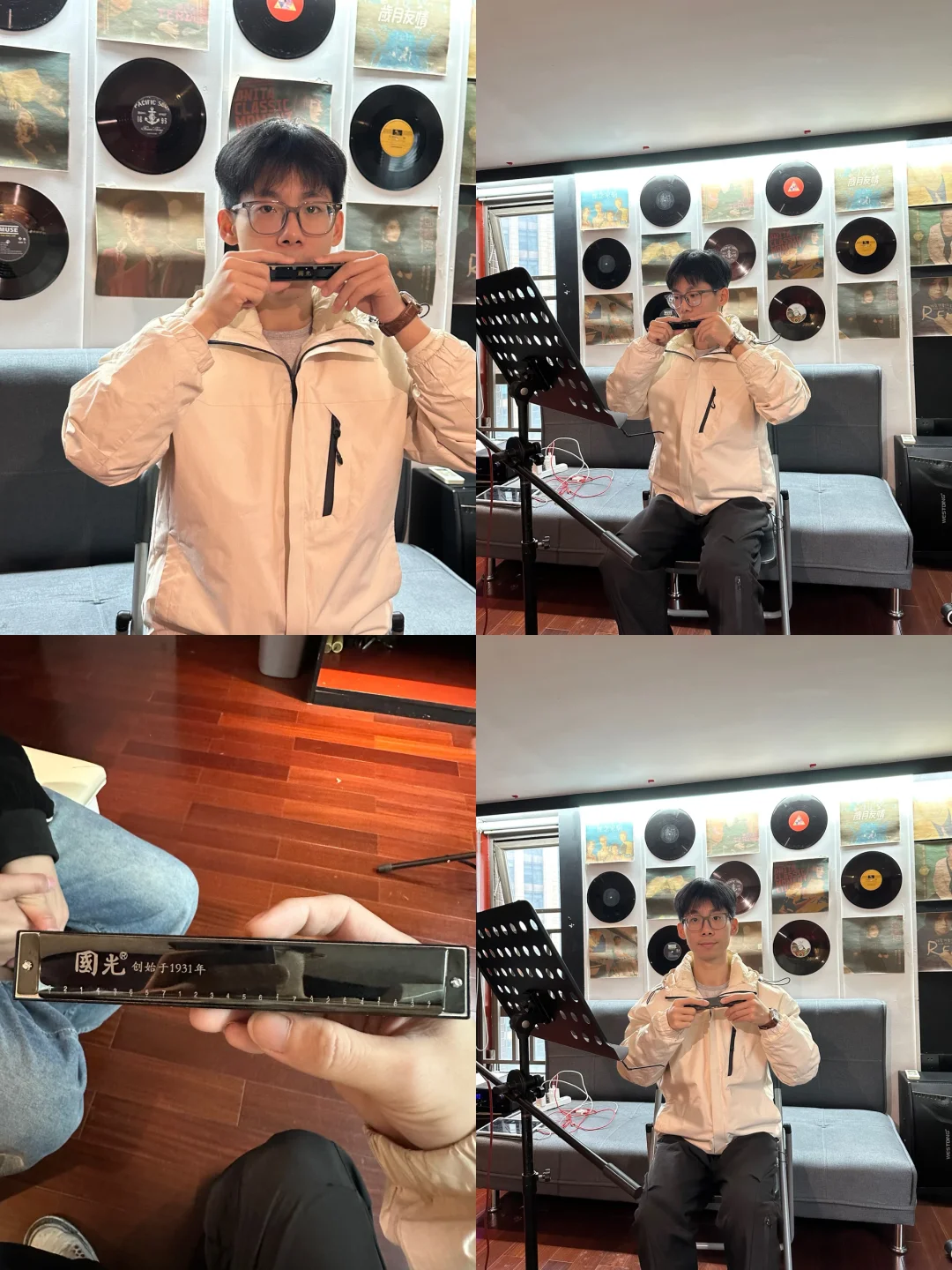 路过一家音乐店,突然想试试从没玩过的口琴!之前吹过萨克斯、葫芦丝,一直以为口琴就是单纯“吹”,结果老师教的时候直接颠覆认知——居然要一吹一吸交替,还得配合轻微晃动,才能发出不同的声音~