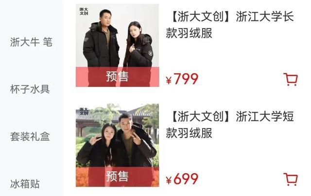 “浙大文创”的服务号里,多款羽绒服都显示“预售”状态。