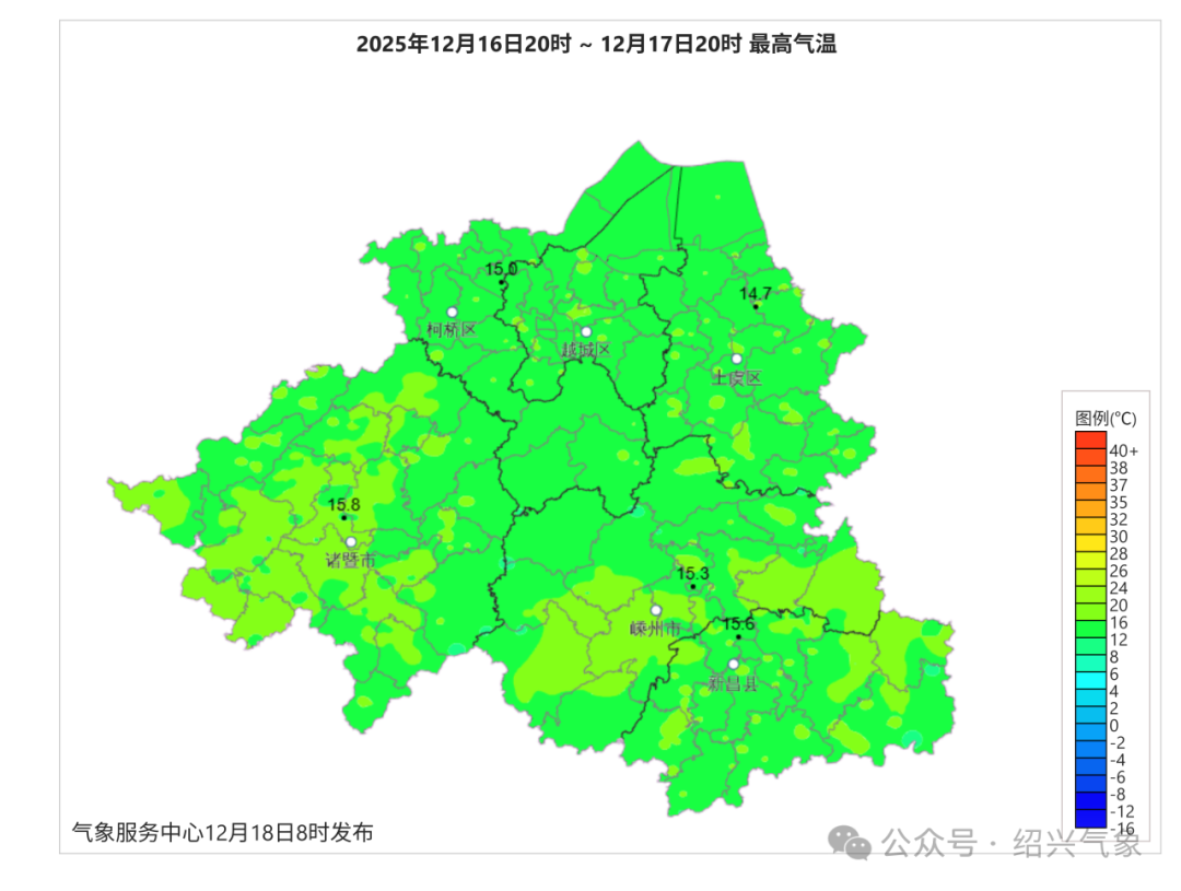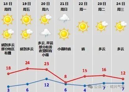 昨天绍兴晴到多云,最高气温普遍在15℃左右,今天早晨大部分地区最低气温3~5℃。