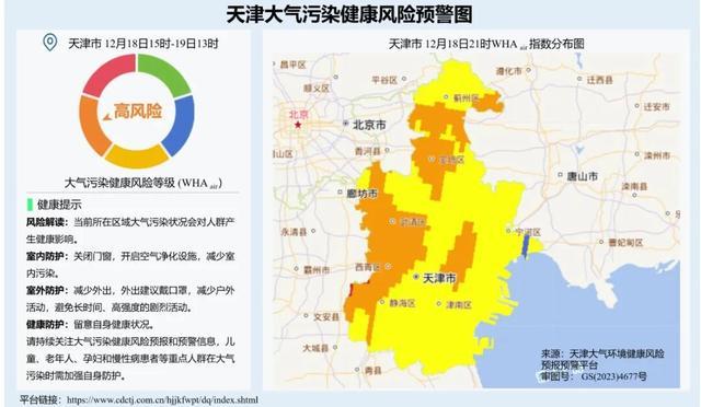 预计18日15时至19日13时,天津市河北区、红桥区、东丽区、北辰区、武清区、宝坻区、和平区、河东区、南开区、津南区、宁河区等多区县大气污染健康风险高,请注意防范。