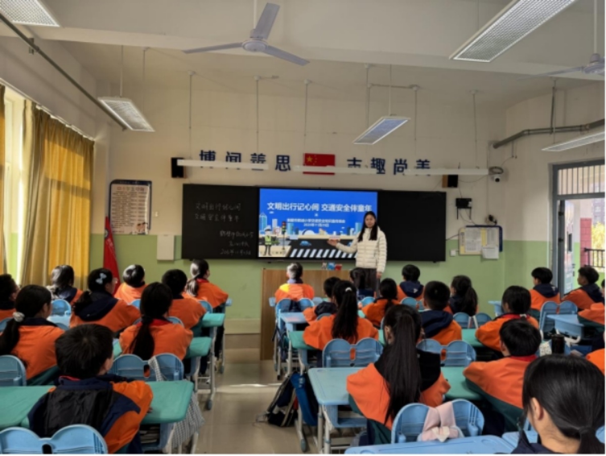 知行合一,家校协同护成长。推动安全教育从认知走向实践,从校园延伸至家庭。校内开展“我是小交警”体验式教学、交通安全标志识别竞赛等活动,并通过发放《致家长的一封信》、家长群推送安全提示、邀请家长参与“亲子安全海报设计”等方式,积极构建家校协同的交通安全教育共同体。引导家长以身作则,共同遵守交通法规,在每日的上放学途中做好示范与守护,实现“教育一个孩子,影响一个家庭,带动整个社会”的辐射效果。