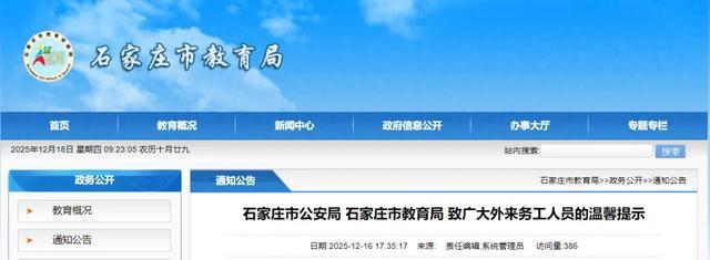 石家庄市公安局石家庄市教育局致广大外来务工人员的温馨提示