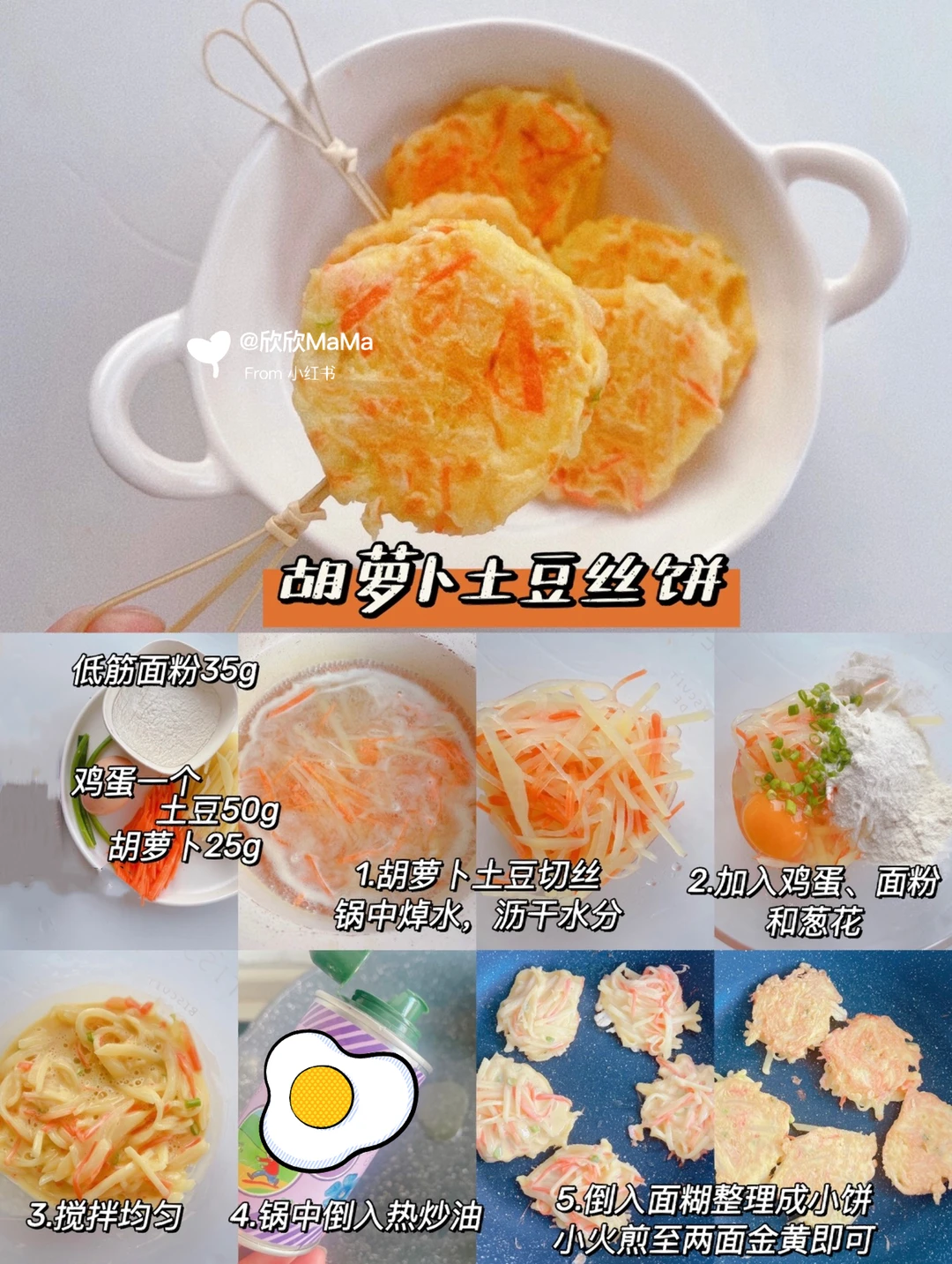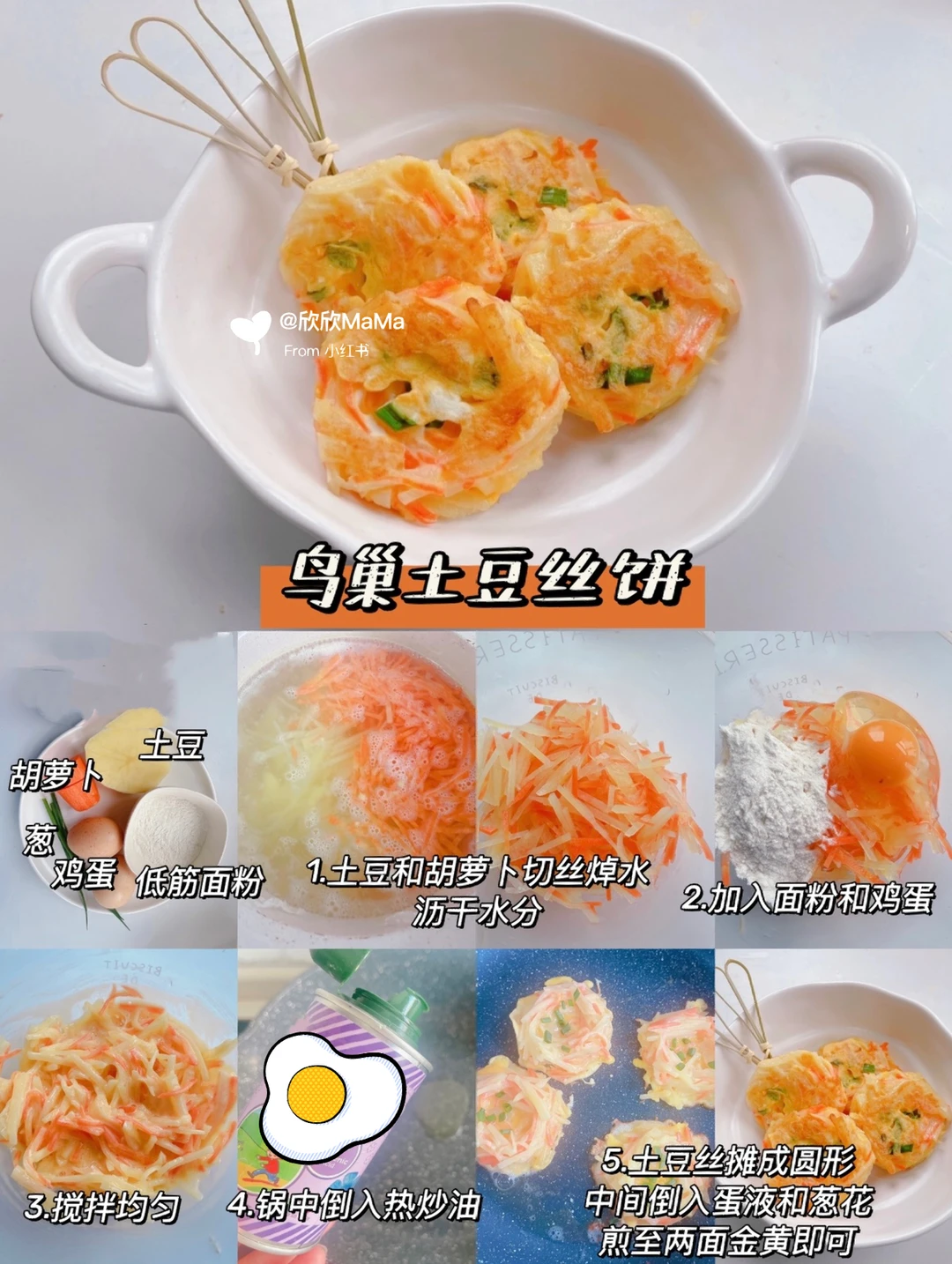 今天来分享12款快手的早餐饼 10分钟内就能搞定,食材搭配,营养美味。再搭配一碗粥/米糊煎制就是完美的一餐!特别适合懒忍妈妈,上班族妈妈,全职妈妈!还可以锻炼宝宝的咀嚼能力和抓握能力 - ✅鸟巢土豆丝饼 ✅宝宝萝卜虾饼 ✅蔬菜面条小饼 ✅胡萝卜土豆丝饼 ✅宝宝时蔬蛋饼 ✅宝宝蔬菜蛋饼 ✅莲藕鲜虾饼 ✅香煎萝卜饼 ✅丝瓜鲜虾饼 ✅蔬菜早餐饼 ✅胡萝卜丝饼 ✅西葫芦鲜虾饼 - 🌟具体做法请看图2-图13 大点的宝宝加点盐会更好吃!