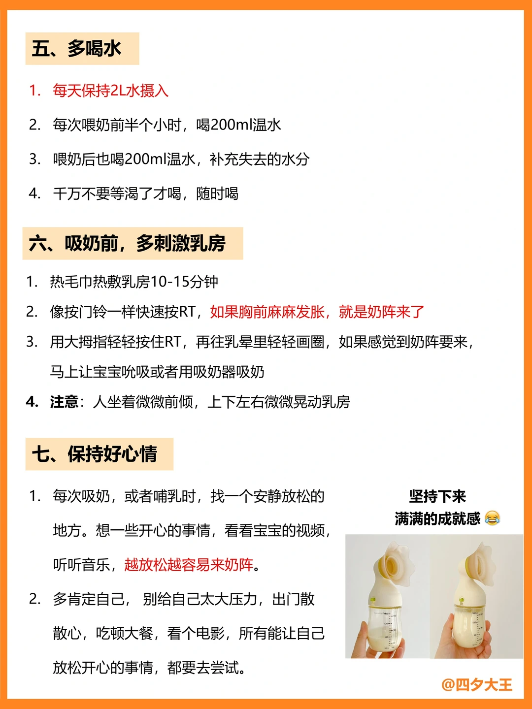 其实就是多喝水!无论是五红汤,还是其他下奶汤,都离不开水,你甚至每天狂喝白开水也能慢慢涨奶!