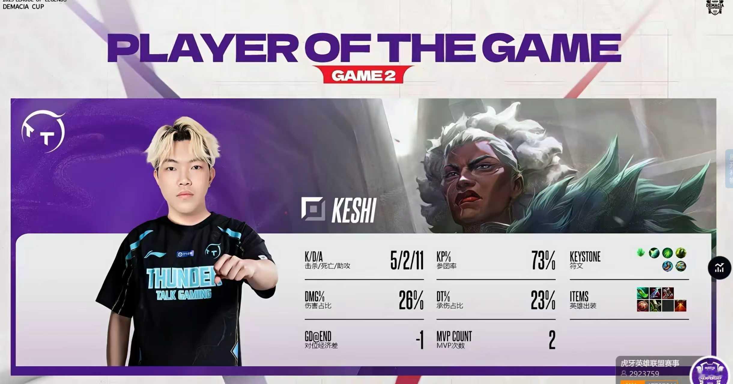 【德玛西亚杯 Day4】TT 2:0 ZSMMVP给到Keshi 5/2/11的安蓓萨2025德玛西亚杯zsm对战tt