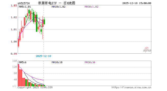 12月18日,家居家电ETF(515730)跌0.39%,成交额493.86万元。当日份额减少300.00万份,最新份额为1.08亿份。最新资产净值计算值为1.09亿元。