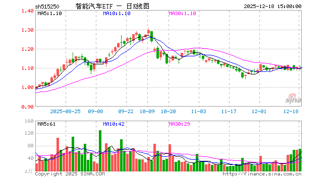 12月18日,智能汽车ETF(515250)跌1.00%,成交额7818.55万元。当日份额增加1400.00万份,最新份额为5.26亿份,近20个交易日份额增加3900.00万份。最新资产净值计算值为5.75亿元。