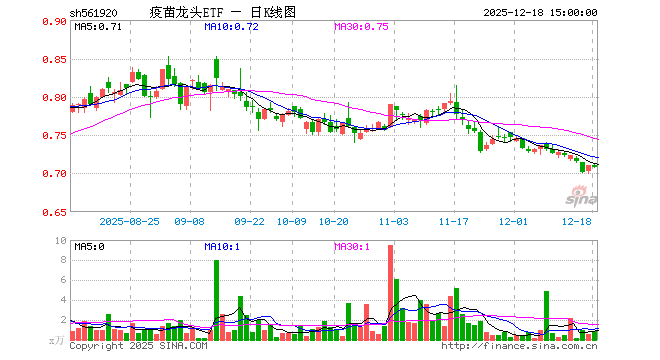 12月18日,疫苗龙头ETF(561920)跌0.28%,成交额60.05万元。当日份额减少100.00万份,最新份额为3669.20万份,近20个交易日份额增加100.00万份。最新资产净值计算值为2597.43万元。