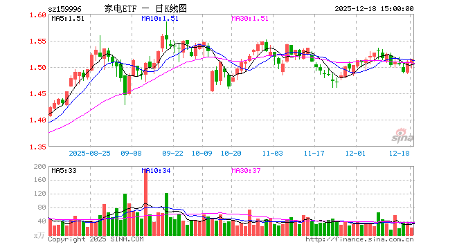家电ETF(159996)业绩比较基准为中证全指家用电器指数收益率,管理人为国泰基金管理有限公司,基金经理为苗梦羽,成立(2020-02-27)以来回报为50.04%,近一个月回报为0.51%。