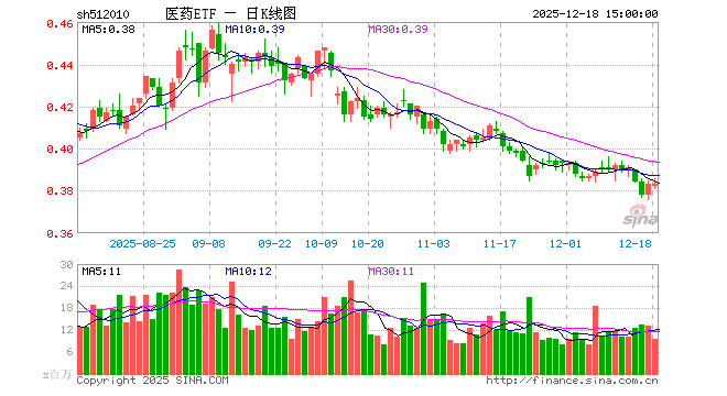 12月18日,医药ETF(512010)涨0.00%,成交额3.63亿元。当日份额减少1.54亿份,最新份额为442.16亿份,近20个交易日份额增加3.74亿份。最新资产净值计算值为169.21亿元。