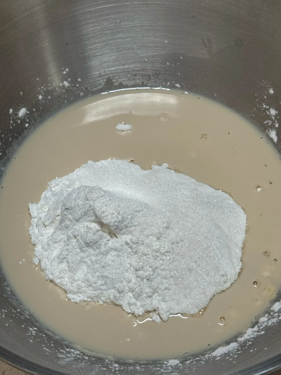 1.红茶包放热牛奶里静置半个小时,泡出茶色,再加入玉米淀粉、糯米粉、细砂糖搅拌均匀。