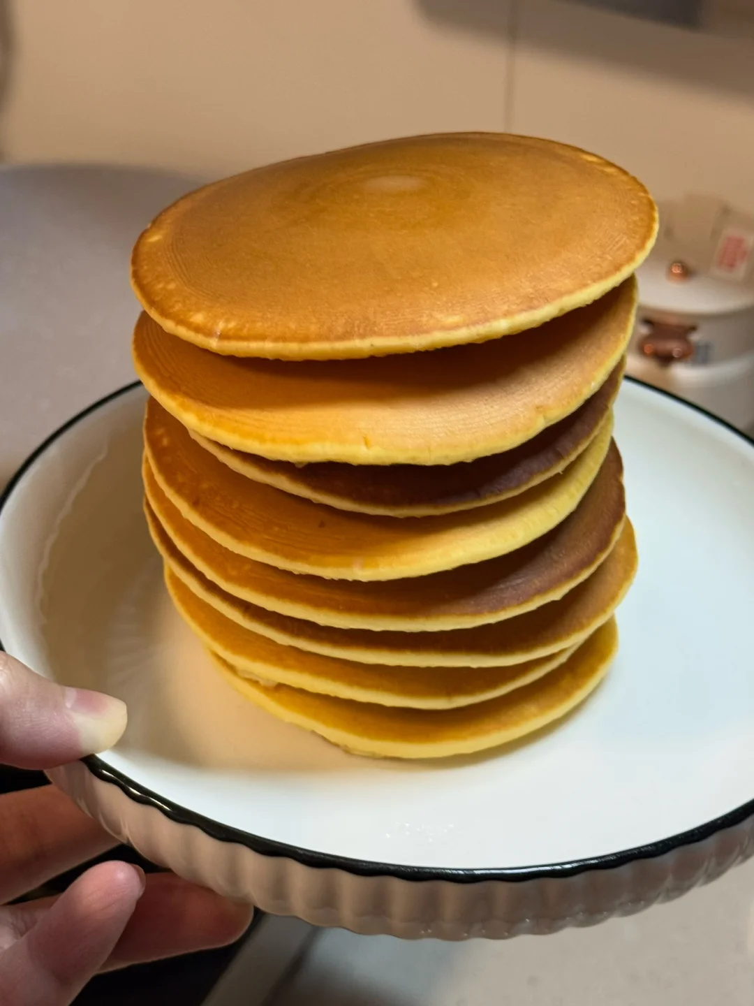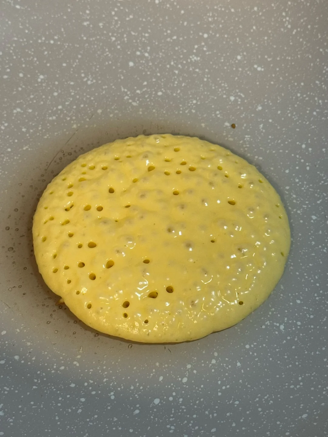 1.一定要选不粘锅,再准备一块湿布,拿个汤勺,从高往下倒,就会形成一个很圆的圆形,全程做小火,布满小泡泡的时候翻面再煎15秒左右,每煎完一片饼皮就放在湿布上降温,这样可以使饼皮的上色更加好看更加均匀。