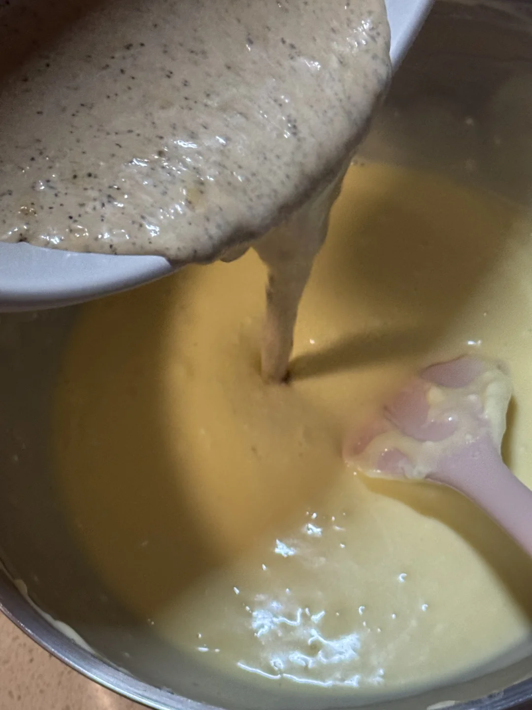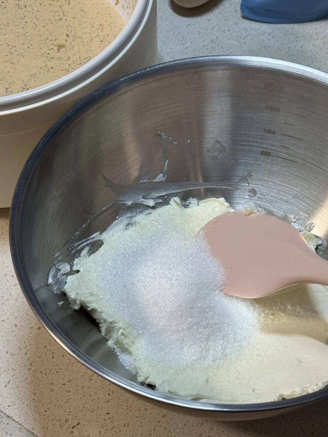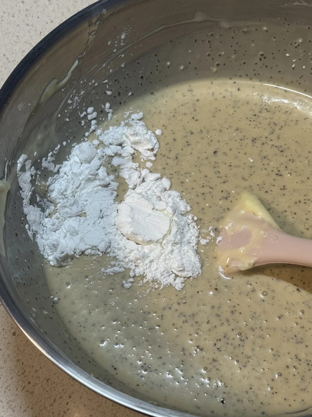 2.奶油奶酪室温软化后加入细砂糖,翻拌至顺滑,依次加入鸡蛋搅匀,加入伯爵红茶搅匀,加入玉米淀粉搅匀,过筛。