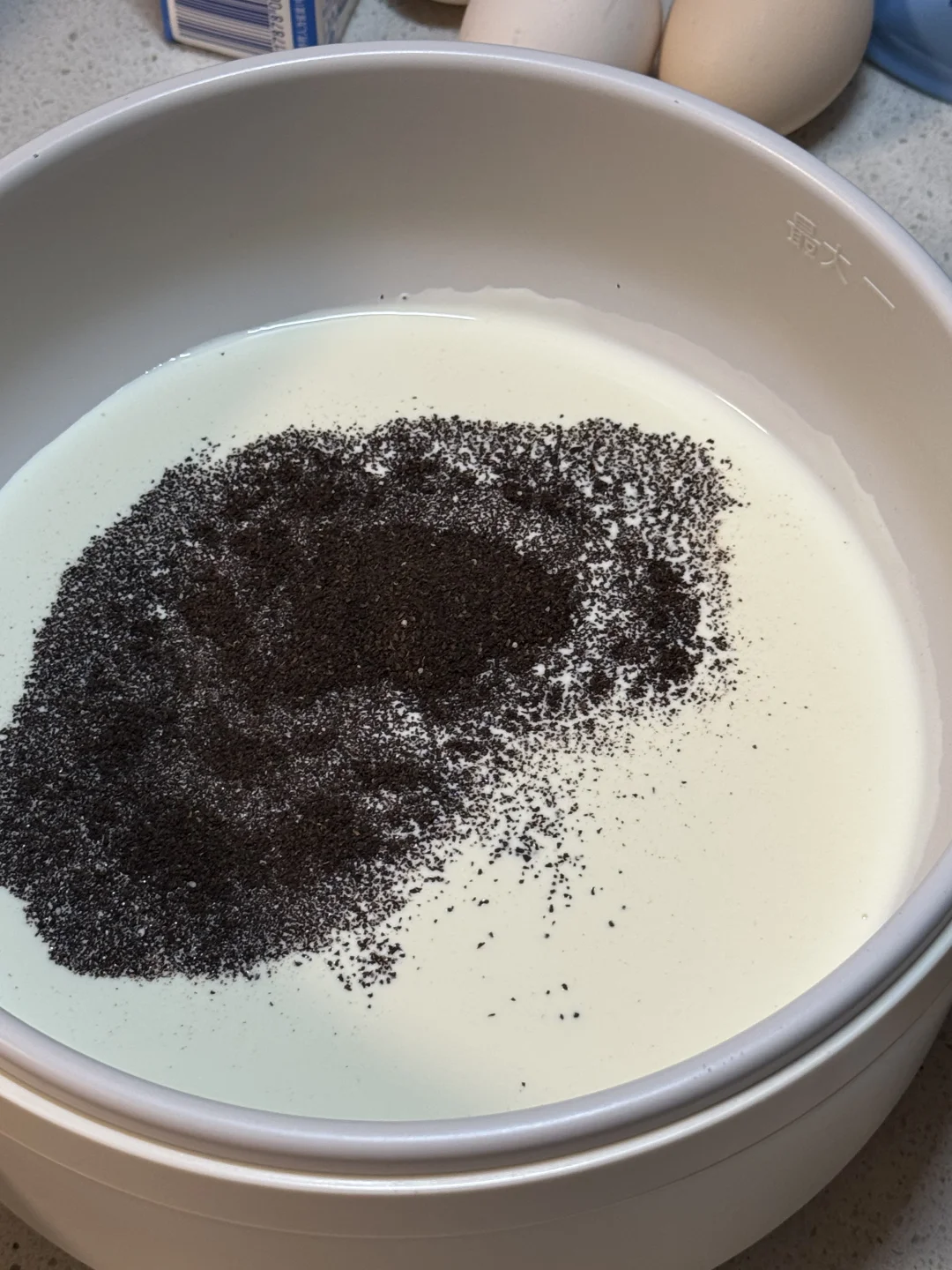 1.伯爵红茶、淡奶油用奶锅煮至有茶色晾凉备用。