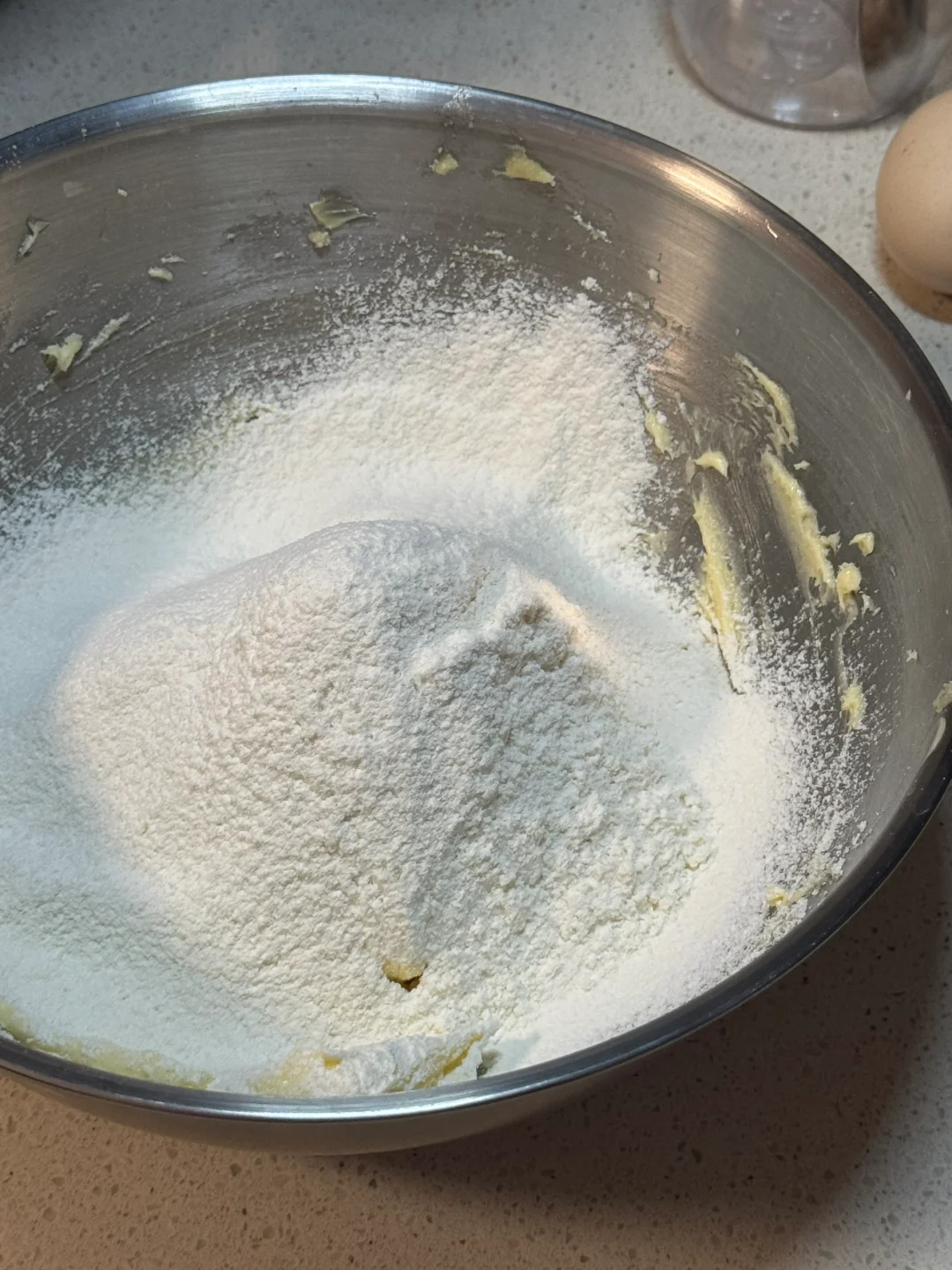低筋面粉135g 杏仁粉15g 泡打粉0.5g