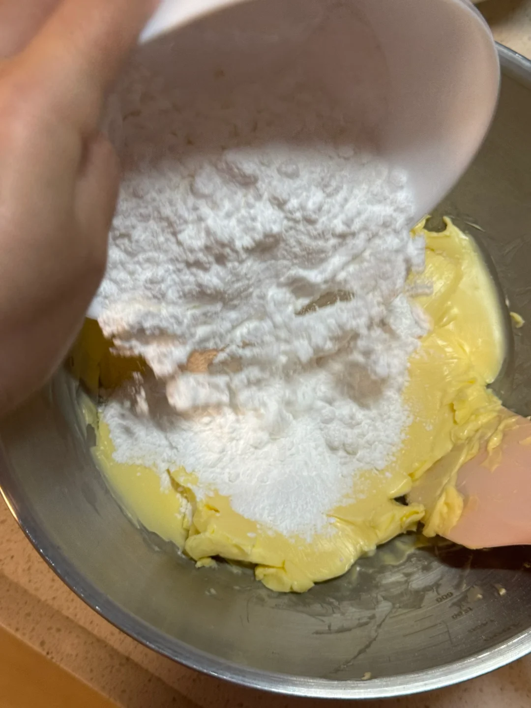 1.黄油提前软化,加入糖粉翻拌均匀,用打蛋器打发至蓬松发白。