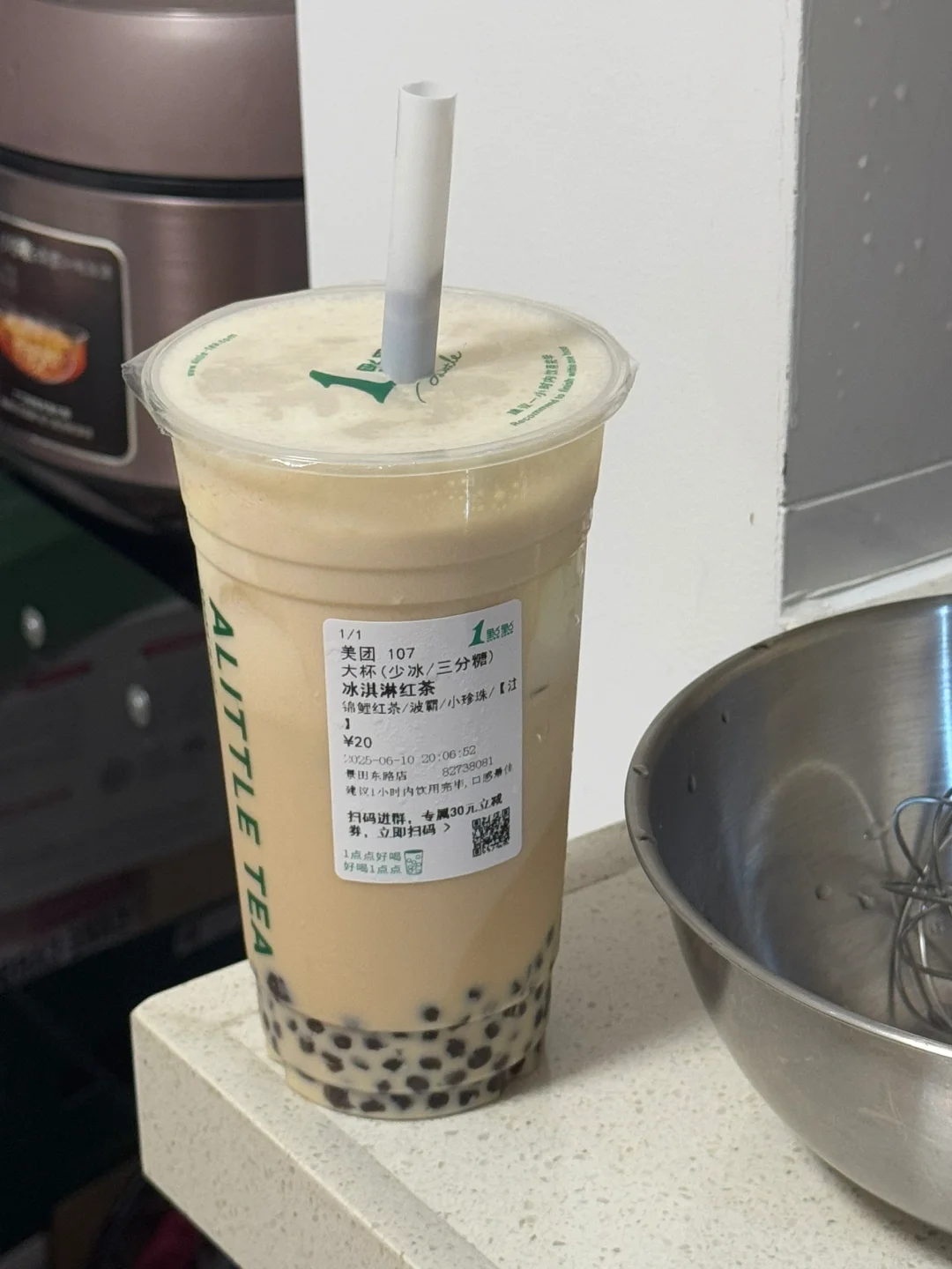 🌷冰淇淋红茶,三分糖,加波霸、珍珠(也可以加茶冻)口感上不像奶茶的那种感觉,是另外一种奇妙的口感!!!建议大家都去喝真的好好喝!!! 🌷喝之前摇匀再喝哦!夏天来上一杯真的很解暑[哇R][哇R][哇R]