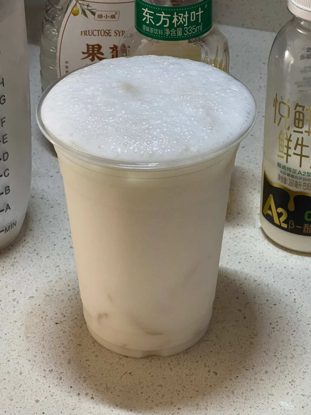 🌷食材: 荔枝8颗 悦鲜活鲜牛奶150ml 茉莉花茶200ml 糖浆20ml 冰块 🌷做法: 1.荔枝去皮去籽备用。 2.放入雪克杯中捣出汁,加入糖浆、冰块,倒入牛奶、茉莉花茶,雪克一下。 3.倒入饮品杯中,浓郁的奶香融合荔枝和茉莉的清新口感,一口就爱上[哇R][哇R][哇R]